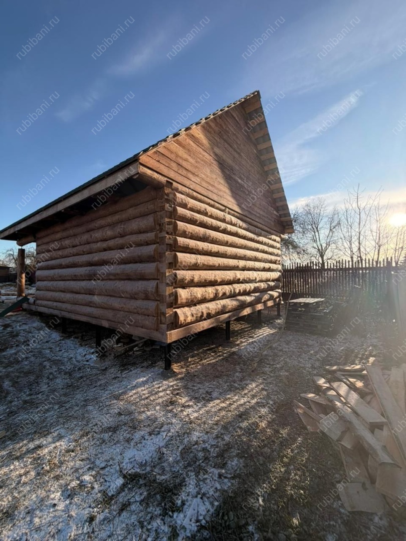 Баня 5×4 с рубленой террасой, 30 м²